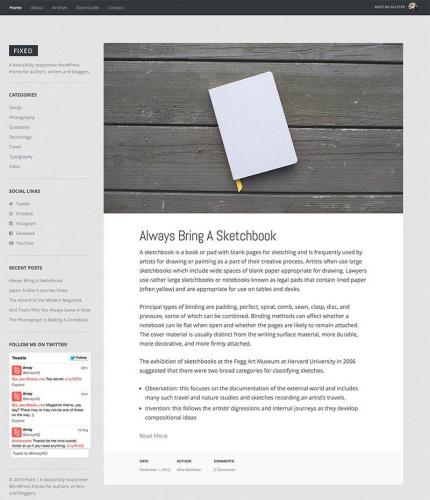 Use Fixed as a personal blog or a minimal portfolio to share your latest articles, photo galleries and videos.