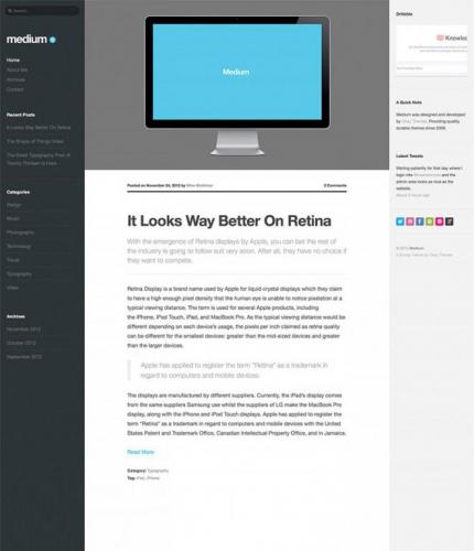 A lean, mean blogging machine with snappy AJAX post loading, a dynamic header and abundant white space.