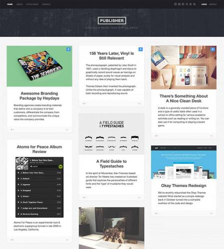 Featuring a responsive, masonry-style layout, Publisher is an eclectic scrapbook of photos, videos, audio and more.
