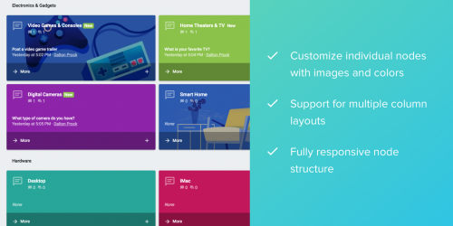 - Layouts are fully responsive based on the device viewing them allowing for the theme creator to decide how to optimally show the nodes on their forum