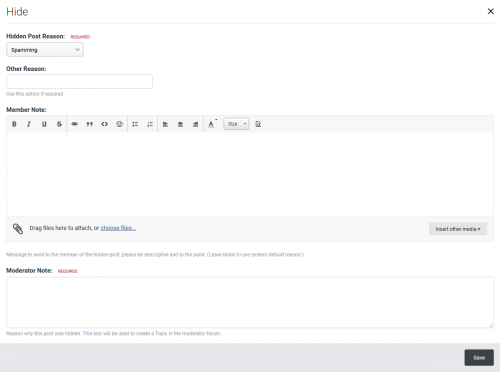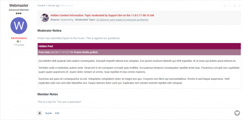 - Moderator Note: This note will only be displayed to Administrators and Moderators, either within the hidden content or the Moderator Topic Post.