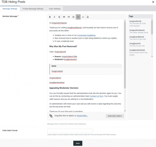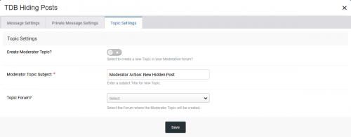 - Moderator Topic Subject: Custom Subject for the Moderator Topic. The Hidden Content URL will be appended to this.