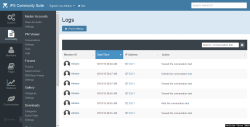 This application will allow administrators to read conversations on Admin CP. If admins has a special permission, they will also be able to VIEW hidden conversations, EDIT, HIDE/UNHIDE conversations (from appearing on PM Viewer application) and INVITE/REMOVE MEMBERS from conversations. Conversations can also be tracked by filtering keywords. If a specific keyword added by an admin is used on Conversation, users from selected group will receive a notification with a link to the conversation on PM Viewer application. Admins can also use tools to HIDE or UNHIDE all conversations with one click.