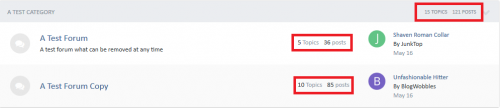 - Show total stats (This will calculate the overall total of topics and posts in each category and place the total amount in the category header)