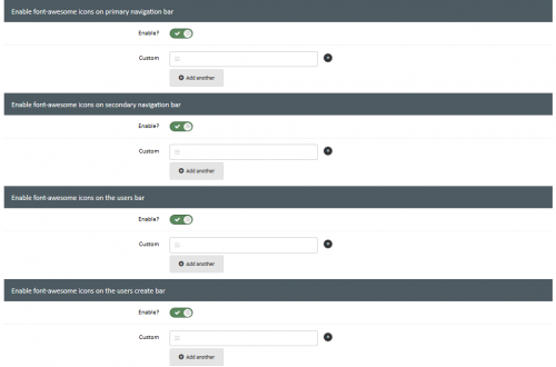 The font-awesome icons are set for the English language and are set for the IPS apps and core functions if you have 3rd party apps or plugins what add tabs then there is a setting to add them to any of the bars above, The same applies if you are using a different language then English (there is a help section in the plugin with full easy outlined details of how to add your own