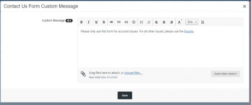 If your site's like mine, people consistently use the Contact Us form to ask questions that are better suited for the forums. I searched all over and couldn't find a way to put a message explaining what to use the form for. So I made my own way.