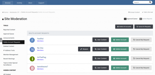 - The Staff will review each request to approve it or deny it on ModeratorCP -> Delete Account Requests