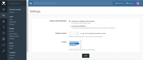 - Admins can choose which user groups can request delete account and how many posts a user must have to do it