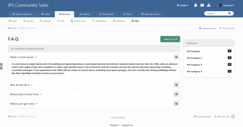 This application will add a FAQ module to your site allowing admins, moderators even your members if you choose to allow them add frequently asked questions to your site
