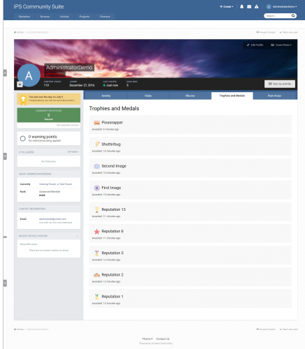 Build a rich and advanced awards system with a nearly limitless variety of choices to help you promote the most awesome community you can! Create sets of new trophies based upon various criteria, and layer them with other sets to create a whole system of awards! The criteria system uses native IPS 4 extensions for deep integration, and more criteria can be added in future releases. Let us know what criteria you need