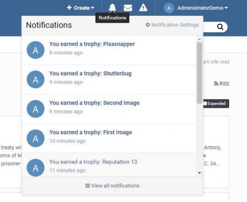 - Medals - Medals are manually awarded by moderators, administrators, or groups who have permission. Medals are assigned on the front-end.