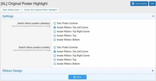 • Style property that will define the ribbon position Top Left corner/Top Right Corner/Top/Bottom.
