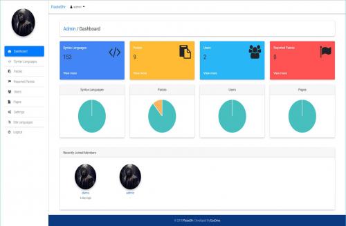 - Admin panel to manage pastes, syntax, users, pages, languages, translations & other settings