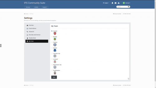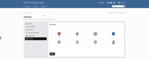 - The select team page can use an image grid, radio list or dropdown for each team.
