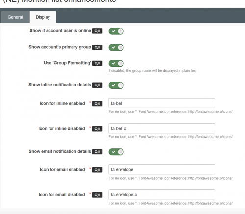 - includes ability to manage the icons for enabled/disabled status of those settings (uses Font-Awesome)