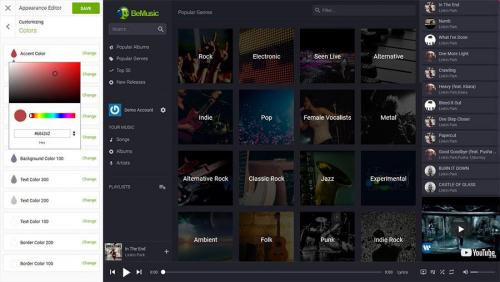 - Appearence Editor – Powerful appearance editor will allow you to easily change the look of BeMusic without any coding knowledge.
