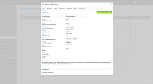 • Keep track of leads in one place and easily follow their progress. Ability to auto import leads from email, add notes, create proposals. Organize your leads in stages and change stages easily with drag and drop.