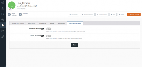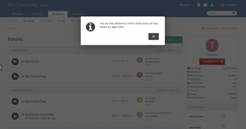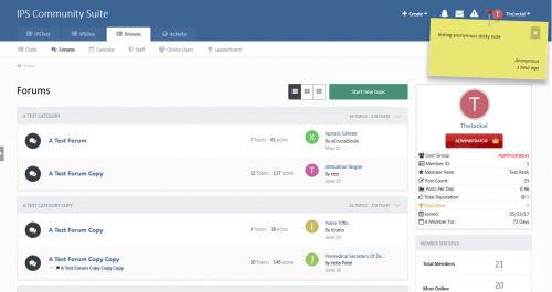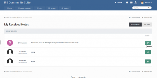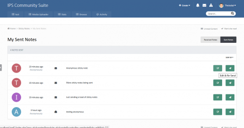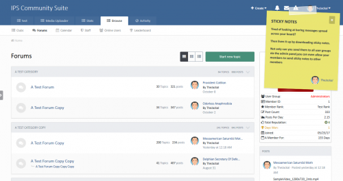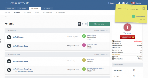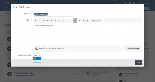 - Members can either send Personal Sticky notes to members by their hover card or via their forums topics and you can also send them via the users create menu