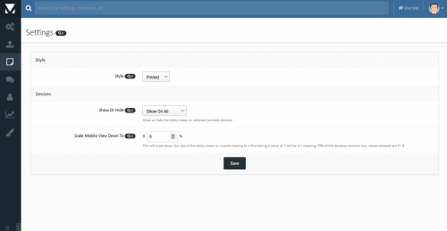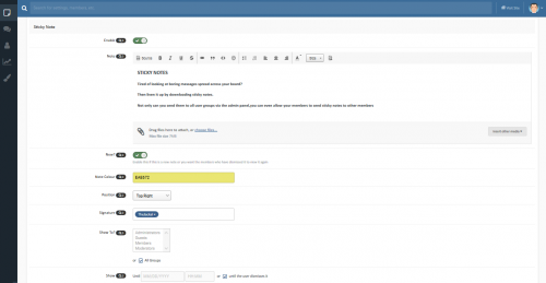 - Select where to show each Sticky Note from a list of your installed applications or to just show it everywhere ( Example only show the Sticky Note when users are browsing the forums or the downloads section etc )