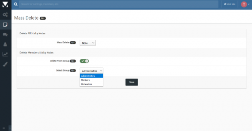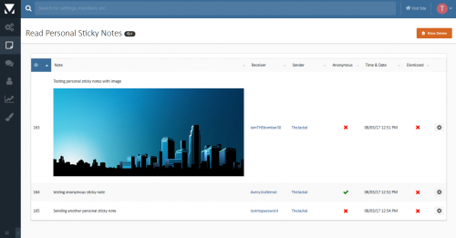 - Mass delete Sticky Notes by either "ALL", "READ", "UNREAD", by individual members or by chosen user groups