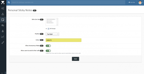 - All personal Sticky Notes will automatically add the username and avatar, unless you have selected in the ACP to allow anonymous Sticky Notes (read ACP Menu below)