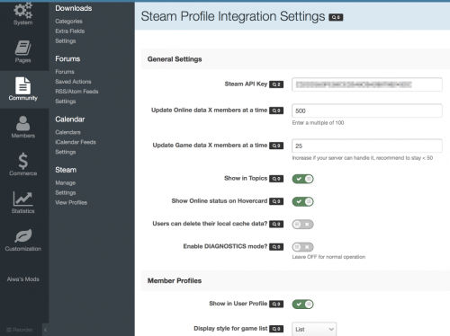 This app will obtain data from Steam for your users, and groups, and place it in your IPS Community database for use anywhere on your site. Your board will re-load your members Steam Online information, in configurable batches, every 2 minutes, so you always have up to date information without impacting load times of your community pages.