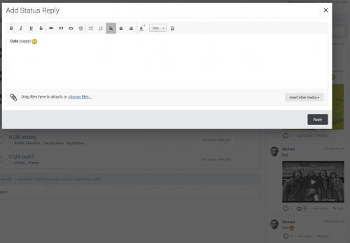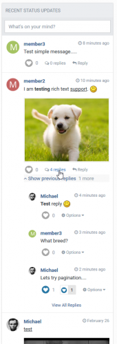 Adds status replies and add reply support to the "Recent Status Updates" widget, similar to how IPB 3.4 worked.