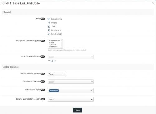 This plugin will hide LINKS, CODE, IMAGES and [HIDE] in forum posts automatically. Members can use REACTIONS or REPLY to see the hidden content.