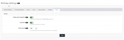 - NEW Integration with Basic Points application to give out points on members birthday.