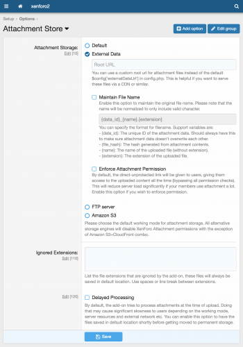 3. Configure working mode in AdminCP > Home > Options > Attachments