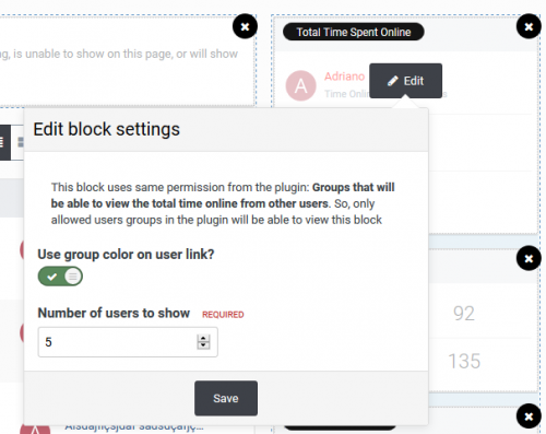 - Groups that will be able to view the total time online from other users