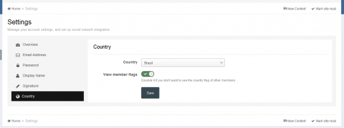 - Display country flag everywhere: will display the country flag in several places from official apps like on Forums, Gallery, Blogs, Pages, Gallery, Downloads, including its widgets and third-party resources. If disabled, will display the country name + flag only on user profile.