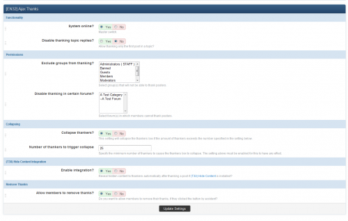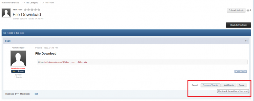 This modification adds the ability for members to thank posters via Ajax. In addition, it keeps track of the number of times each member has been thanked and displays it in each post. It is very light-weight and adds no additional queries to the Topic View. It can automatically collapse the thankers if the list is too long. It can also integrate with (T30) Hide Content to show hidden content in posts simply by clicking the Thanks Button. Upon clicking the Thanks Button, the thanks will be added via Ajax and the thanks box below the post will flash three times to indicate that the post has been thanked. Finally, users can later choose to Remove Thanks if they regret clicking the button.