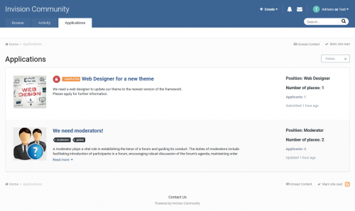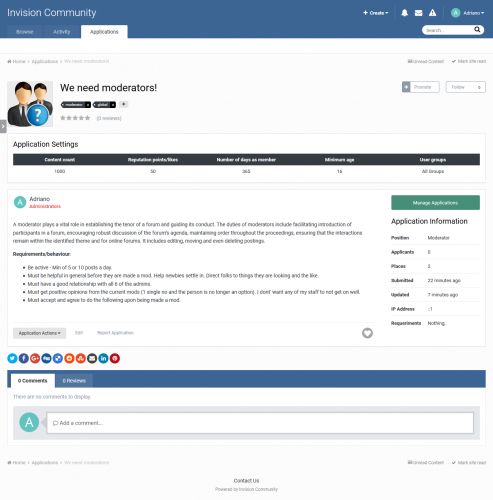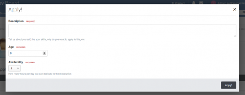Are you looking for staff? Developers? Designers? Or anything else? This application will help admins/moderators to find people to help in their boards.
