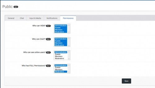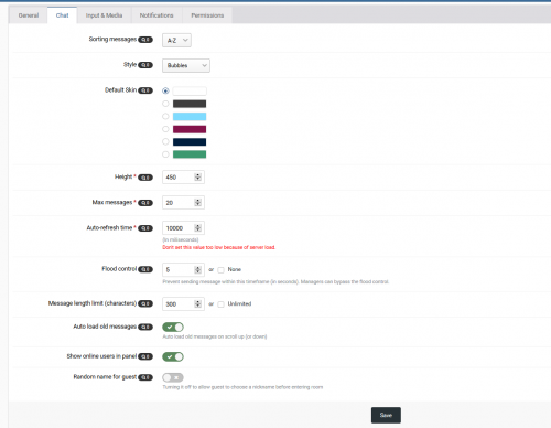 - Admin can create multiple rooms, display rooms in widgets, or a new page.