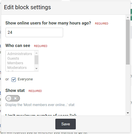 Keeps track of the number of registered members that have visited your site in a custom duration and also records which day you set the record for the most members online in the same day all options done via the front settings and Admin CP.