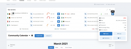 Server table showing server information about the status, name, number of players, current map and their owners as applications on IPS Community Suite.