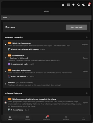 Villain is a dark, semi-transparent dark skin which includes a simple background picker allowing your members to choose their own image from a preset array of high quality background images. Perfect for any community, and especially great for gaming forums or site who want to offer customization options to their members!