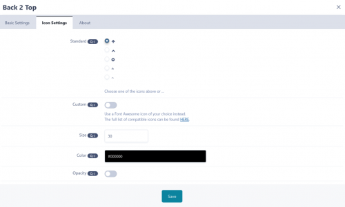 -Icon selection - Choose from 5 "standard icons", or use a Font Awesome icon of your choice.