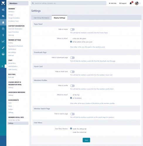 - Choose what user groups can use Members Social Info