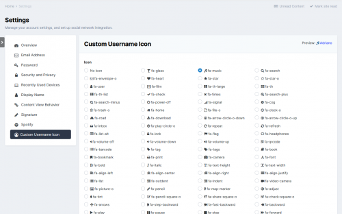 This plugin will allow users to choose one among 634 font awesome icons to be displayed before their link across the suite. Icon will be displayed only before the user link.