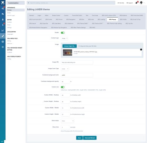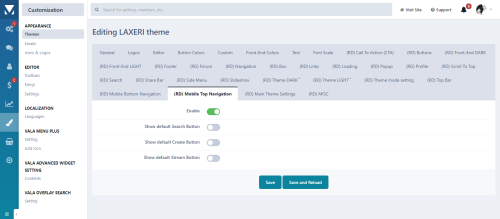 The following items are also customized: Buttons, Links, Forums, Topics, Posts, Navigation, Profile image, Mobile navigation bar, Main theme setting, Front-end Dark | Light, IPS box, etc.