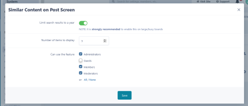 This plugin will show similar content titles on the post screen when the user is typing in the title field. It uses defaults from IPS4 core search, like sorting by relevance or date, number of characters per word, permission for the items, etc. Works in Clubs too.