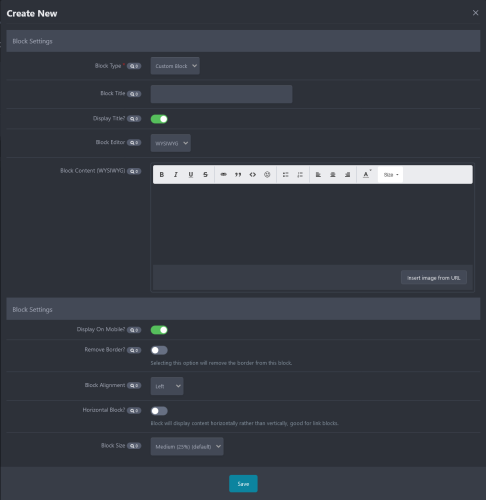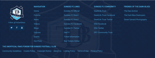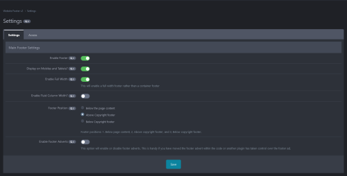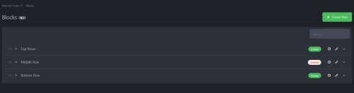 Add as many rows and blocks to your footer as you like. Text, HTML, links, and Page blocks.