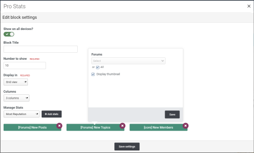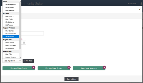 Supports IPS official apps: Forums, Downloads, Pages, Nexus, Gallery, Calendar. And 3rd party apps that meet the requirement for IPS4 Content, such as Videobox, Musicbox, Tutorials, etc.... with the following stats: