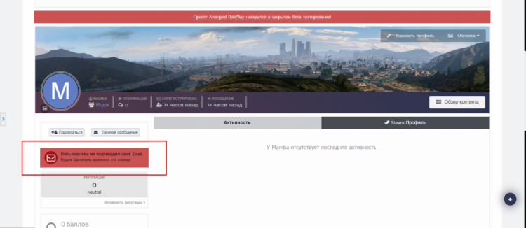 1. A sign in the profile indicating that the user has not confirmed his registration The tablet will appear if the user after registration has not confirmed his Email address open the list of styles HTML and CSS editing CSS tab> custom.css add to the very bottom /** Warning Email in Profile **/ .warning_Email { color: #ffffff; font-size: 26px; padding-top: 7px; padding-left: 1px; width: 40px; height: 40px; border-radius: 38px; position: relative; display: inline-block; text-align: center; background-color: #9e1419; } .WEmail_bottom { padding-top: 5px; } .WEmail_Text0 { padding: 10px; margin-bottom: 5px; background-color: rgb(204, 83, 83); color: #202225; } .WEmail_Text { font-size: 12px; } /** Warning Email in Profile the end **/ open templates we find; core> front> profile> profile find the line; <div class = 'ipsPad'> about 8-8 line add below; {{if $member->members_bitoptions['validating']}} <div class='WEmail_Text0 WEmail_bottom'> <div class="ipsGrid"> <div class="ipsGrid_span2 ipsType_center"> <span class='warning_Email'> <i class="fa fa-envelope-o"></i> </span> </div> <div class="ipsGrid_span10"> <p class='ipsType_reset WEmail_Text'> <strong> {$member->validatingDescription()} </strong> </p> <p class='ipsType_reset ipsType_small'>Будьте бдительны возможно это спамер!</p> </div> </div> </div> {{endif}} That's all, if you want to edit for yourself.