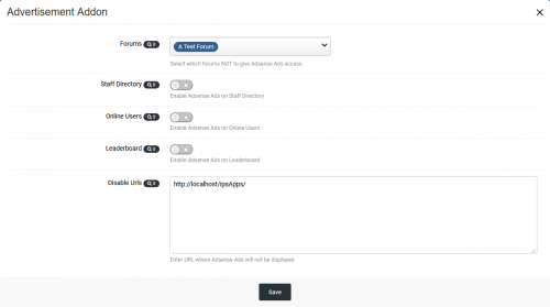 You can select to display Ads on the Staff Directory, On-line Users and Leaderboard Pages.