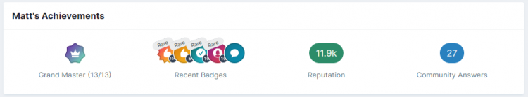 2. My question is where can i find anything that's related to the Profile Achievements in any theme (Default is fine). What i mean by 'Profile Achievements' is this, Using as an example the one that the Invision Community uses. I wanna know where can i find anything related to the thing above to fix up a theme, i managed to add the Achievements tab or whatever it is but it's quite broken.
