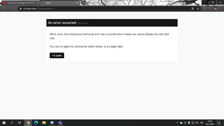 I want to know why I get this error when logging in with my admin account, and how to fix it? An error occurred (500 Error)