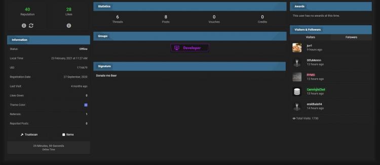 @DicDal Hey, I just downloaded this plugin: https://webflake.sx/files/file/5891-enhanced-user-info-panel/ and installed it. I still dont see the panel, it doesnt work. Do you know where I will find this Sparkling Shiny Group Legend Colors? I only have the simple sparkling without the shiny. Where can I find these Award Icons and Groups? cracked.to Where can I add more Profile Informations like Gender, Country, Current Mood and Contact Methods?